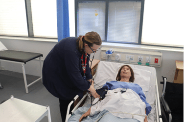 The facilities have been designed to mirror real-world healthcare environments, including four medical bays, a healthcare flat, a mock GP surgery, and advanced clinical training manikins. Together these provide students with a safe but realistic setting to practise everything from patient care and record handling to procedures such as IV cannulation and blood pressure monitoring. The manikins have been named and have functionality which includes breathing and speaking of their pain just like real patients!